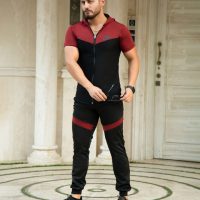 ست تیشرت شلوار زیپ دار مردانه مدل Elmaz (زرشکی )